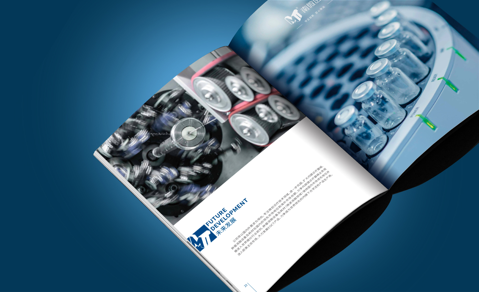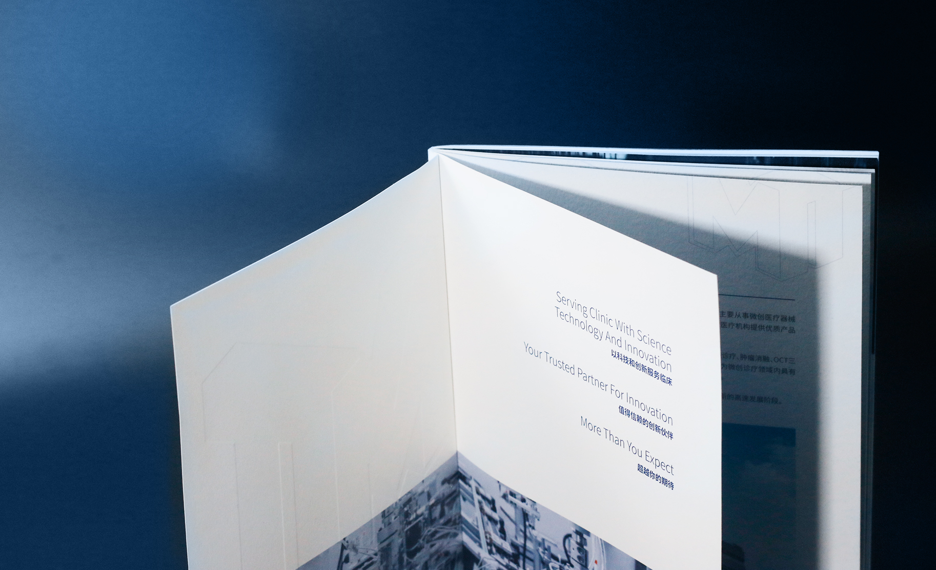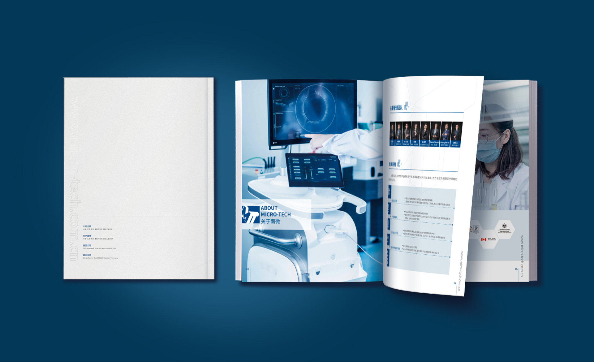南微醫(yī)學(xué)公司找到和與德,希望為其公司設(shè)計(jì)一款國際化,簡(jiǎn)介商務(wù)風(fēng)格的公司畫冊(cè),適用于公司對(duì)外宣傳拓展業(yè)務(wù),和與德為此結(jié)合了通過對(duì)南微醫(yī)學(xué)品牌的調(diào)研,了解其公司高精尖的醫(yī)療產(chǎn)品后,為畫冊(cè)定制了一套國際,簡(jiǎn)約,整體富有科技感風(fēng)格的畫冊(cè),利用點(diǎn)線面,細(xì)線和色塊突出儀器的精密,科學(xué),整體顏色為藍(lán)色調(diào),科技風(fēng),印刷工藝采用了凹凸的壓印技術(shù),凸顯出企業(yè)的大氣和國際化。