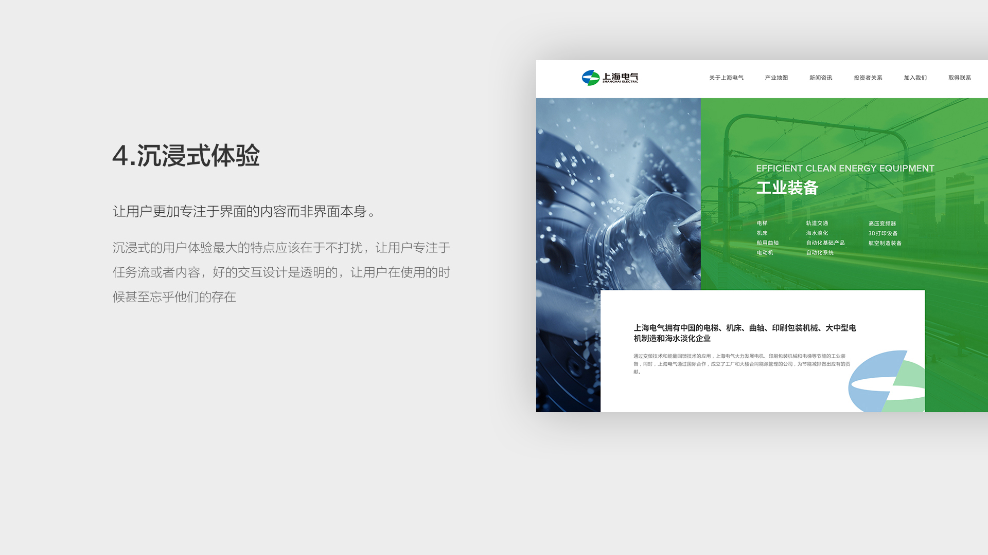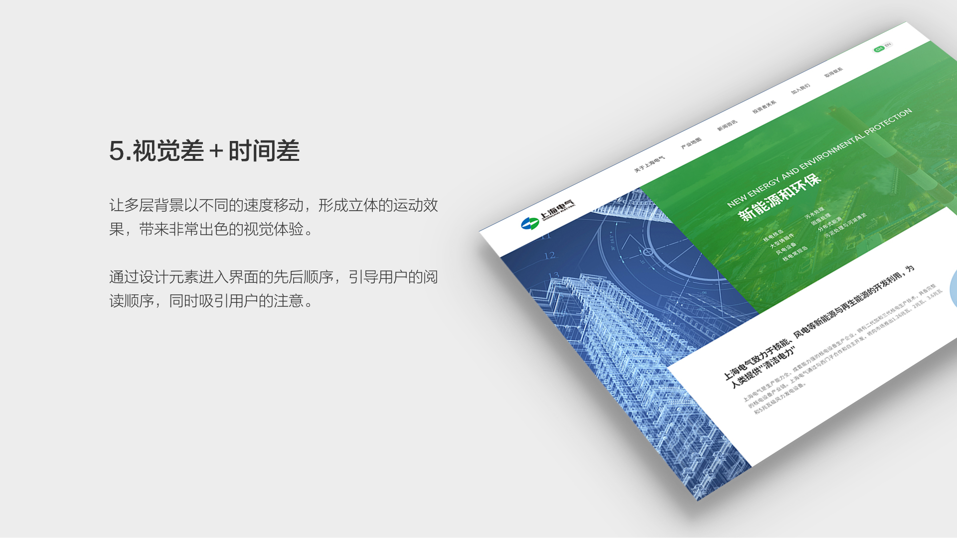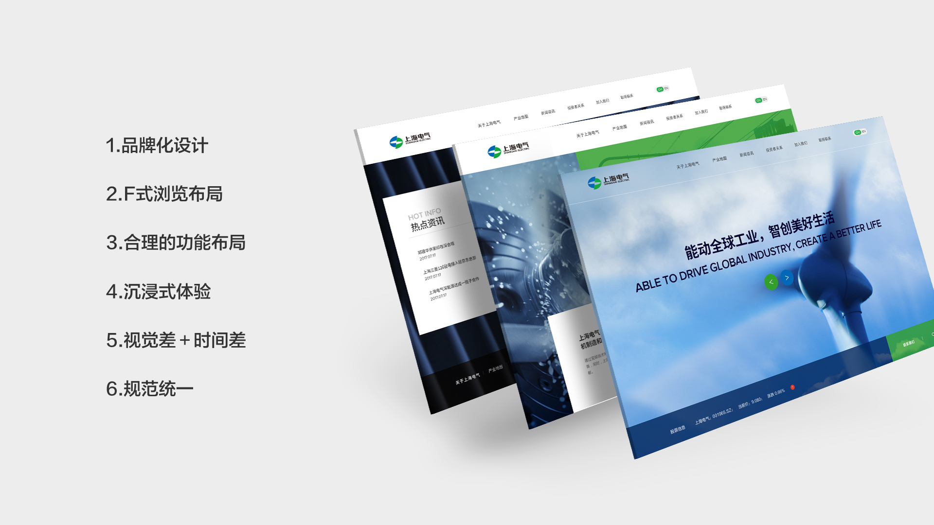 和與德為上海電氣集團(tuán)設(shè)計了網(wǎng)站,從品牌定位出發(fā),通過品牌化設(shè)計、F式瀏覽布局、合理的功能布局、沉浸式體驗(yàn)、視覺差+時間差、規(guī)范統(tǒng)一等視角進(jìn)行系統(tǒng)設(shè)計,贏得了顧客的一致信賴。