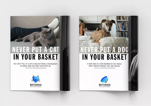 相比之下,新的標(biāo)識打破這一細(xì)分市場的常用手法,采用非常迷人的狗和貓的水彩畫,黑色的耳朵、胡須、鼻子更是奇思妙想的一筆,大寫文字表達(dá)出意思嚴(yán)肅,整體可愛又與眾不同。