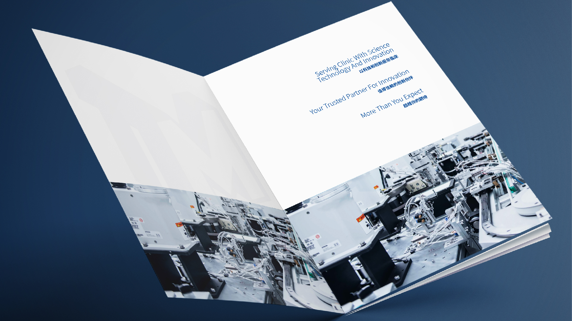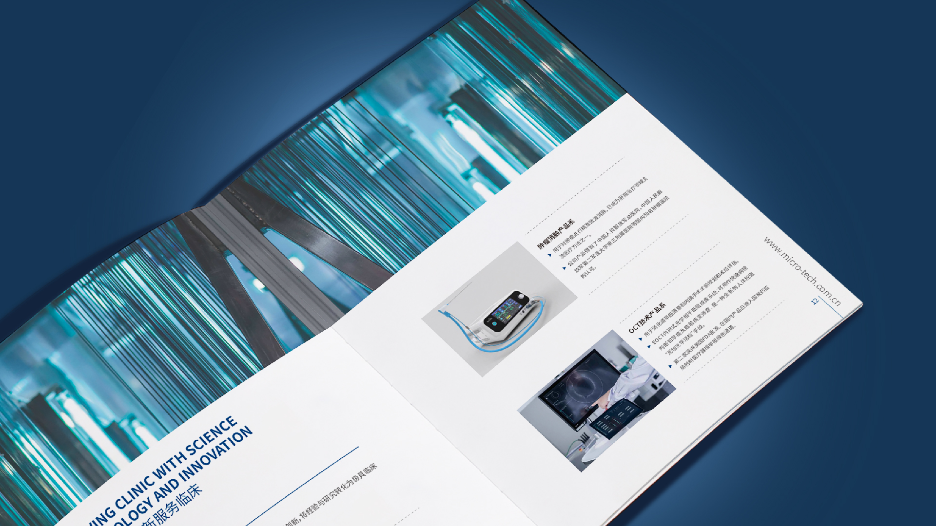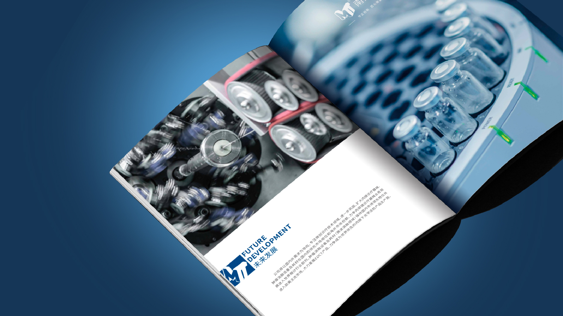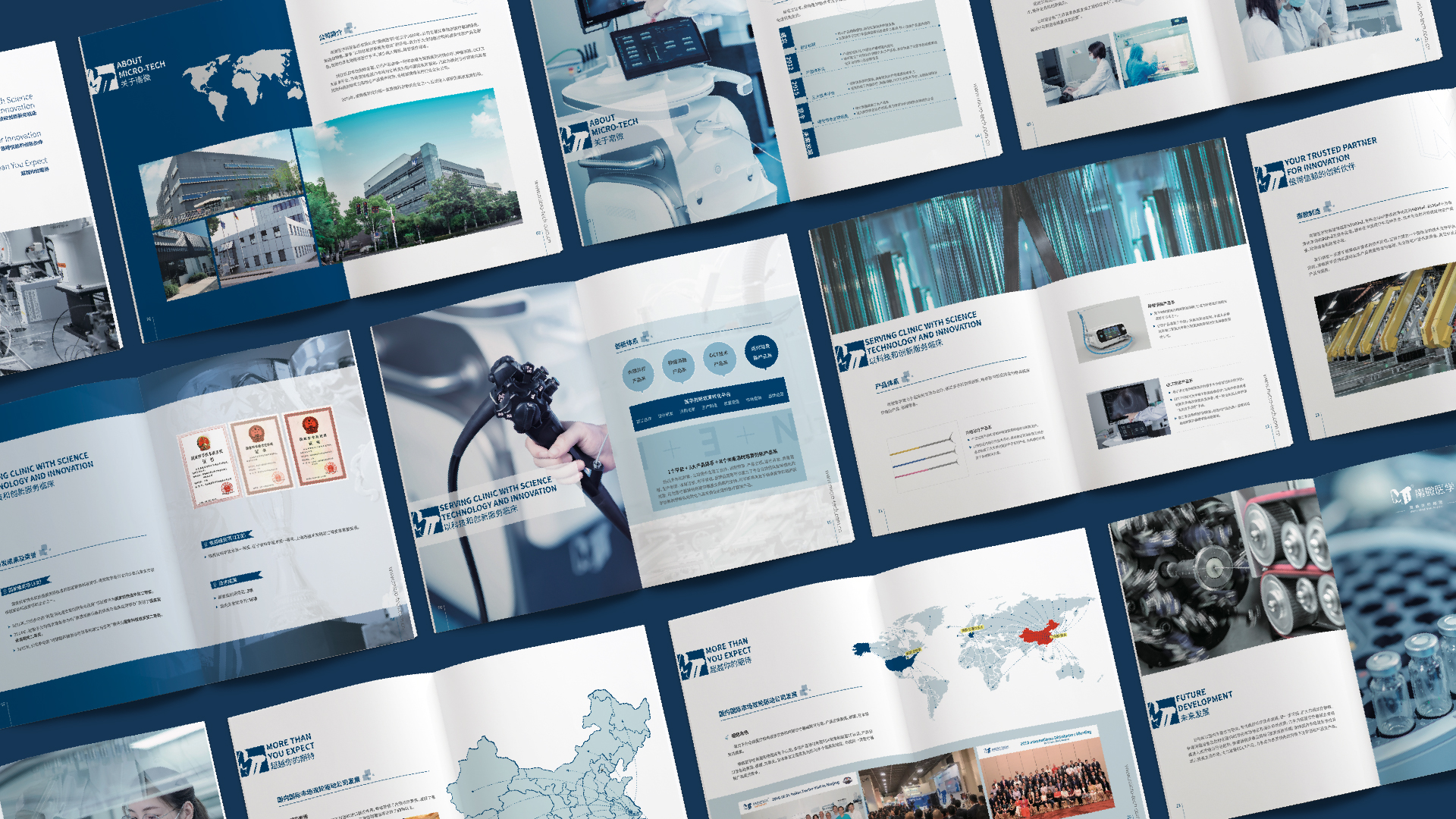 南微醫學公司找到和與德,希望為其公司設計一款國際化,簡介商務風格的公司畫冊,適用于公司對外宣傳拓展業務,和與德為此結合了通過對南微醫學品牌的調研,了解其公司高精尖的醫療產品后,為畫冊定制了一套國際,簡約,整體富有科技感風格的畫冊,利用點線面,細線和色塊突出儀器的精密,科學,整體顏色為藍色調,科技風,印刷工藝采用了凹凸的壓印技術,凸顯出企業的大氣和國際化。